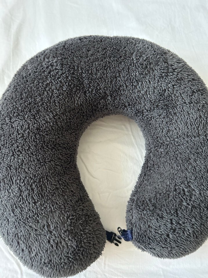 Yumuşak ve peluş gri boyun destek yastığı, U şekilli tasarım ve sağlam tutuş için toka kapama ile. Seyahat veya dinlenme için uygundur.