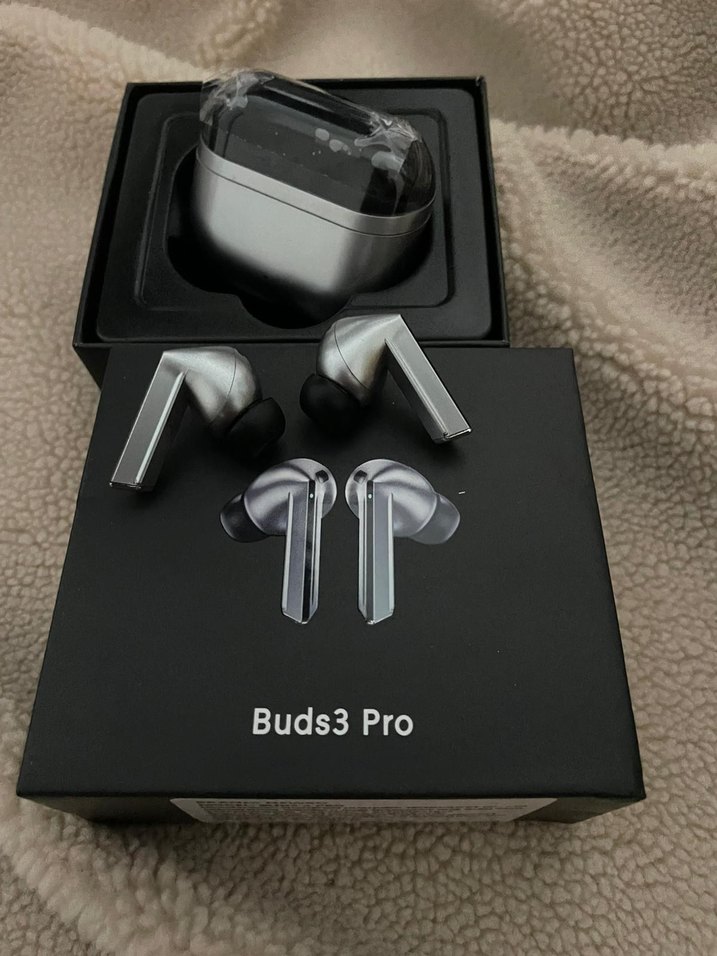 Gri Buds3 Pro kablosuz kulaklık, kompakt şarj kutusu ve ergonomik tasarımla rahat kullanım sunar.