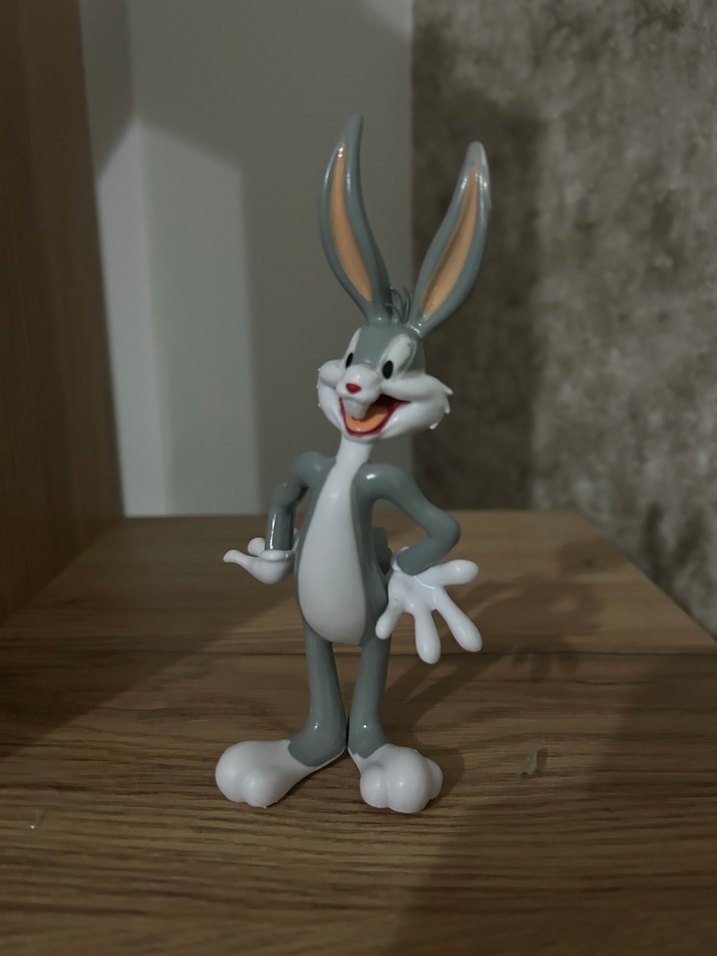 Gri renkli Bugs Bunny aksiyon figürü, karakterin klasik görünümünü detaylı yüz ifadeleri ve pozlarla yansıtıyor. Dayanıklı malzemeden yapılmıştır.