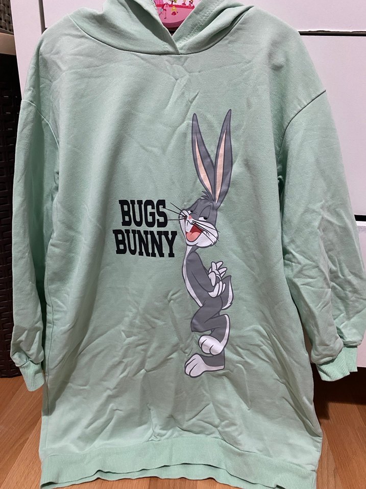 Gri Bugs Bunny Baskılı çocuk elbise