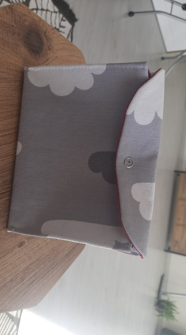 Gri renkli, bulut desenli ve çıtçıtlı kapaklı ici kirmizi astarli ve telali iki adet iç gözü olan genel amacli çantadır. ☁️ olculeri 17x13x4.5 cm