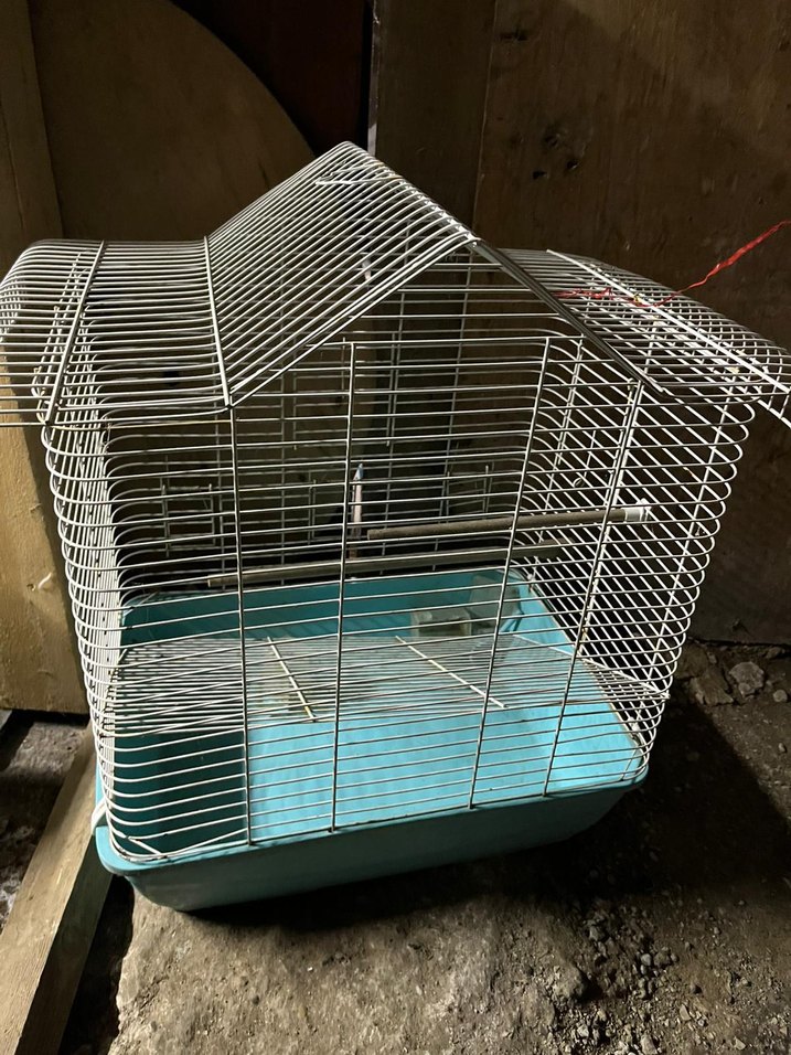 Hafif Beyaz renkli küçük evcil hayvan kafesi, plastik taban ve metal tel yapıya sahiptir. Küçük hayvanlar için uygundur. pas başlangıcı vardır.