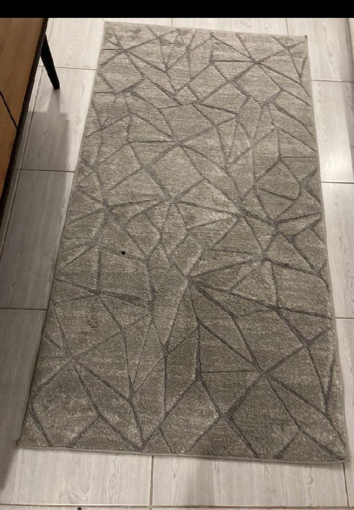 Gri çağdaş halı, soyut geometrik desenlerle hafif doku sağlar. Yumuşak yüzeyi modern mekanlara uyum sağlar.