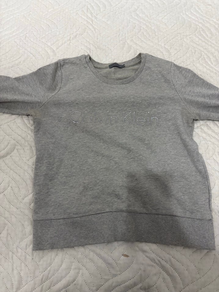 Gri Calvin Klein sweatshirt, yuvarlak yakalı ve uzun kolludur. Yumuşak ve sıcak kumaştan, rahat bir kesime sahiptir. Düz tasarımıyla sade ve şık bir görünüm sunar. XS bedendir ancak S ve M bedene de olur.