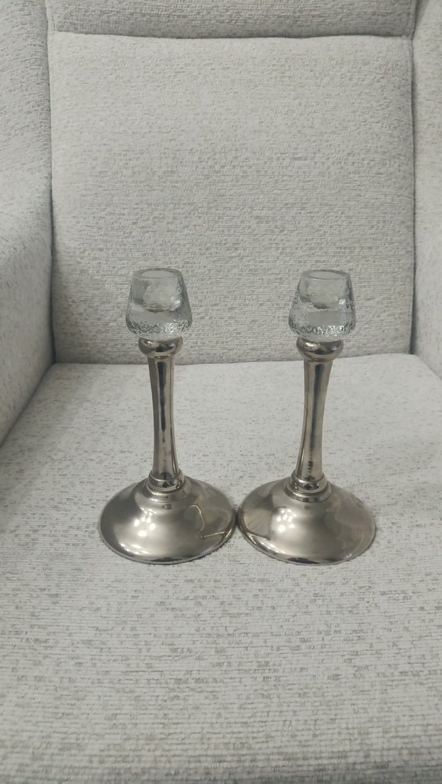 Gri Camlı GÜMÜŞ KAPLAMA Mumluk Çift