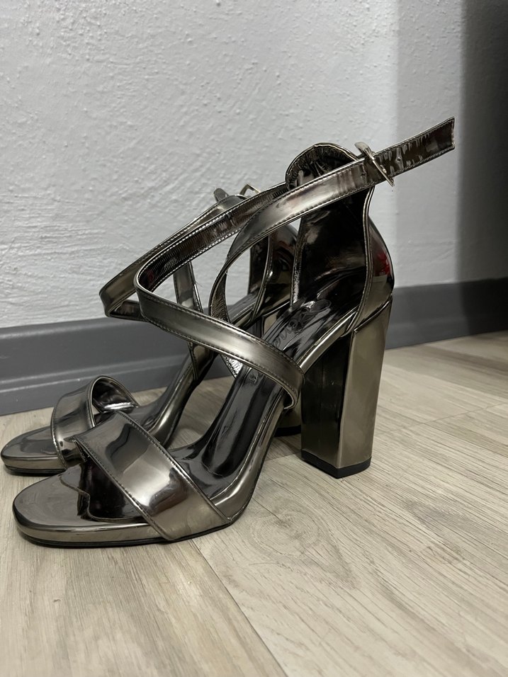 Gri çarpraz bantlı topuklu kadın ayakkabılar, tokalı kayış detayıyla cesur ve çağdaş bir tarz sunar. Romantik akşamlar için uygundur. Sadece 3-4 kez düğünlerde giydim,şuan numarası küçük geldiği ve yüksek olduğu için kullanamıyorum.37 numaradır.