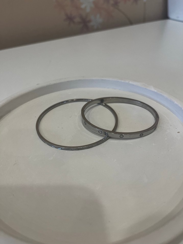 Gri renkte, çelik iki bileklik. Bir tanesi açılıp kapanan kelepçe Günlük kullanım için uygundur ve rahat bir yapıya sahiptir.