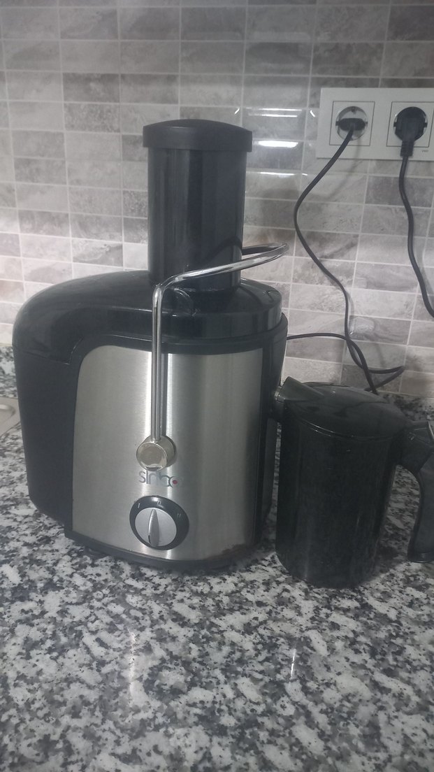 Gri renkte, ve siyah üst kısmı olan katı meyve sıkacağı, çıkarılabilir meyve suyu kabı ve kontrol düğmesi içerir. Uzun süredir kullanmadigim için kenarlarinda biraz paslanma olmus. Onun dısinda herhangi bir sorunu yoktur.