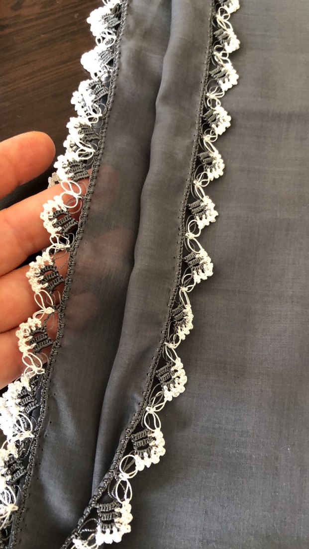 Gri renkte, Cenk marka tığ oyası yapılmış 4 kenar işli