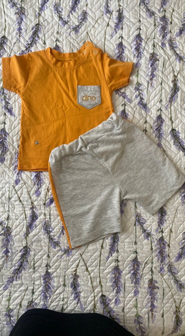 Gri Cepli Kısa Kollu Erkek Bebek Takımı