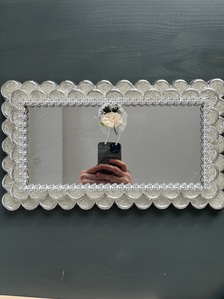 Gri çerçeveli, dalgalı kenar tasarımlı dekoratif ayna, her mekana şıklık katıyor. Yansıtıcı yüzey net ve pürüzsüzdür. Nişan ve söz için düğün için kullanılabilir,hiç kullanılmadı yenidir