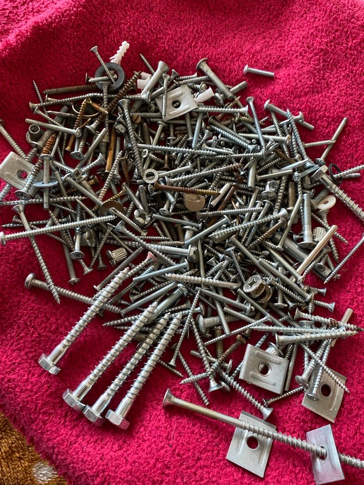 Farklı boy ve türlerde gri çiviler ve vidalardan oluşan çok amaçlı set.