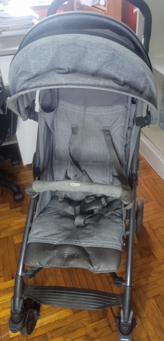 Gri Chicco bebek arabası, konfor ve koruma için emniyet kemeri ve ayarlanabilir tente ile birlikte yastıklı oturma alanına sahiptir elden teslim istanbul umraniye