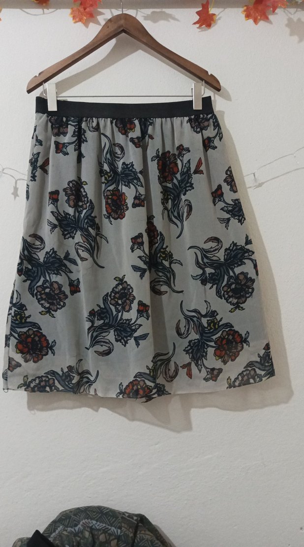 Gri Çiçek Desenli Bohem Midi Etek yazlık efil efil EFSANE