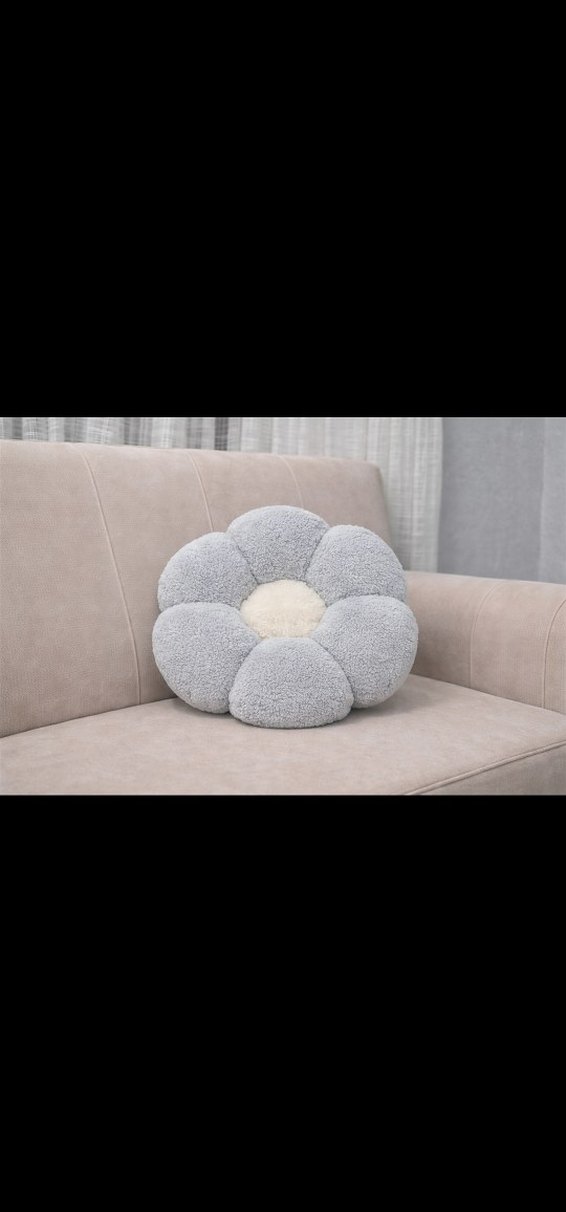 Yumuşak ve peluş gri çiçek desenli yastık, modern tasarımıyla oturma alanlarına konfor ve şıklık katar.