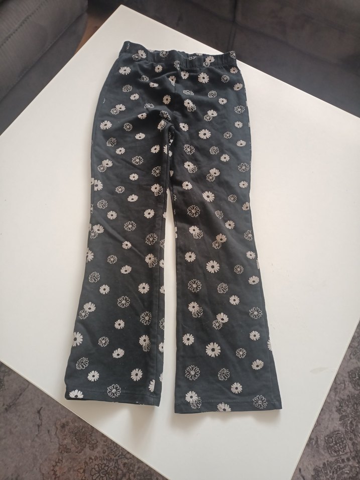 Gri Çiçek Desenli Düğmeli kız çocuk penye İspanyol tayt - Görsel 2
