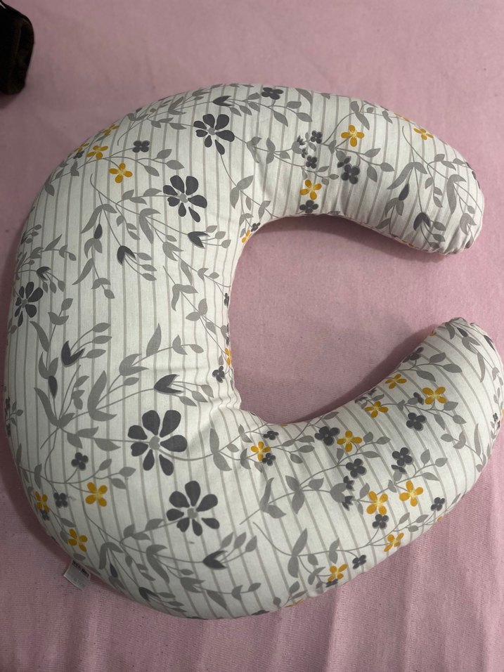 Az kullanıldı Gri çiçek desenli emzirme ve hamile yastığı, hamilelik ve beslenme sırasında konforlu destek sağlar. #bebek