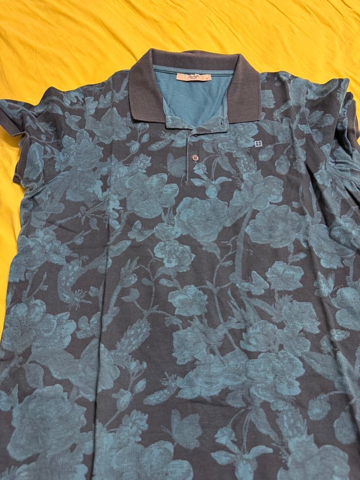Gri Çiçek Desenli Erkek Polo Tişört