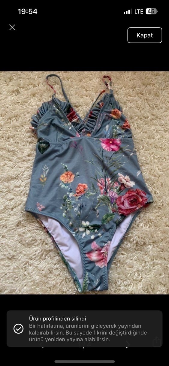 Gri Çiçek Desenli Fırfırlı Mayo #Mayo #deniz #plaj #bikini #beach #tatil