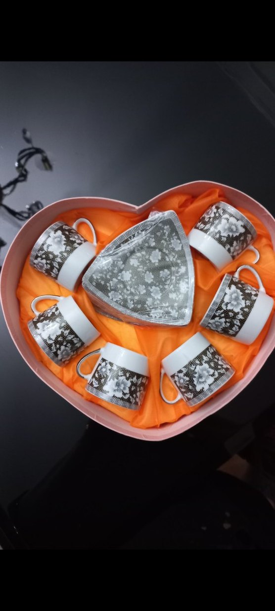 Altı adet fincan Turuncu astarlı kalp kutuda sunulur. ☕Kıbrıstan alındı. Hiç kullanılmadı.