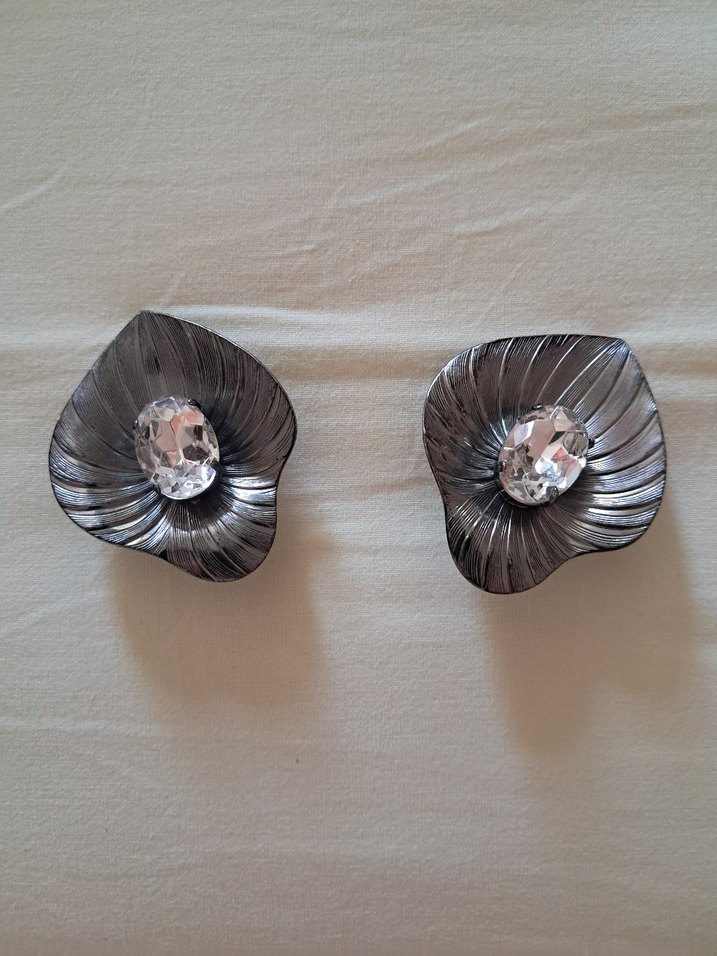 Gri renkli, çiçek desenli mini küpeler, vintage tarzda ve payet detaylıdır, romantik akşamlar için uygundur. ✨