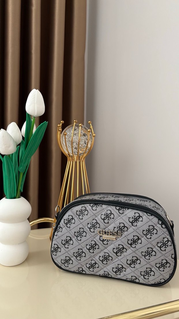 Gri Çiçek Desenli Modern Klasik Makyaj Çantası