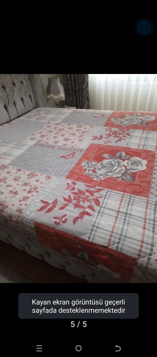 Gri ve mercan tonlarında çiçek desenli pike birz rengi solmus. kullanildi deforme. yok urunu bu. sebeptenuygun tutuyrm