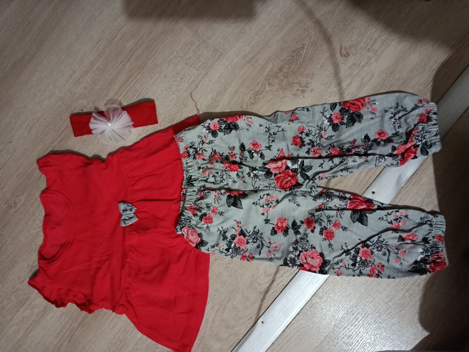 Gri çiçek desenli, uzun kollu ve fırfırlı üst ile uyumlu pantolonlardan oluşan bebek kız takımı. Yumuşak kumaş konfor sağlar.