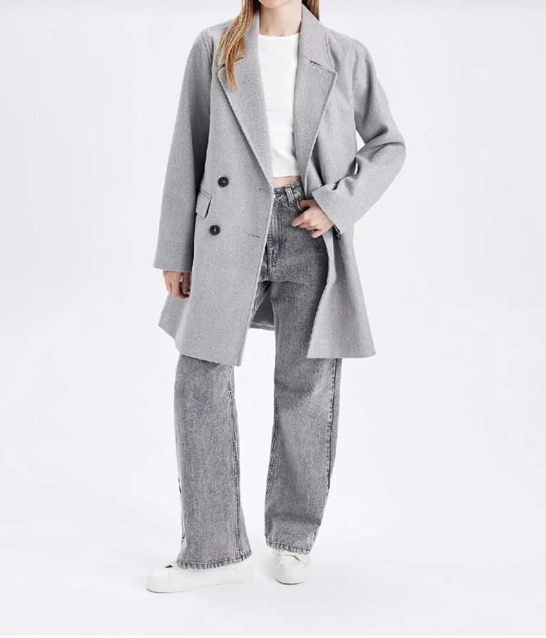 Gri Çift Düğmeli Kaban
