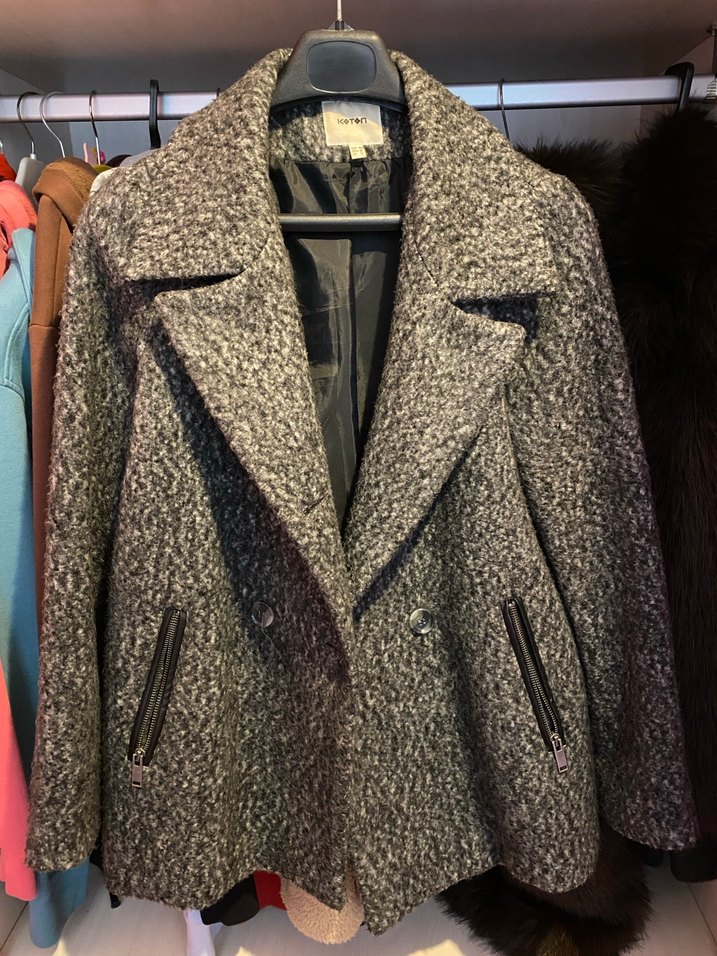 Gri Çift Düğmeli Kaban Gri