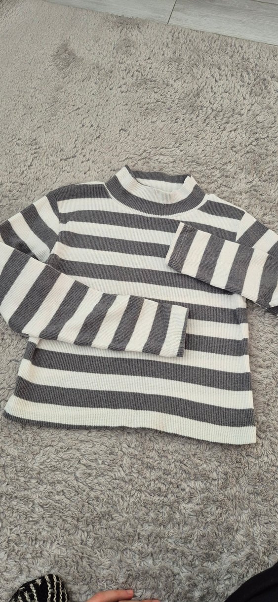 Gri çizgili, balıkçı yakalı uzun kollu kadın kazak. Rahat kesimi ve normal boyu ile yumuşak ve sıcak kumaştan örülmüştür. Casual sokak stili için uygundur. etiket l beden yazıyor ama s beden için uyumludur