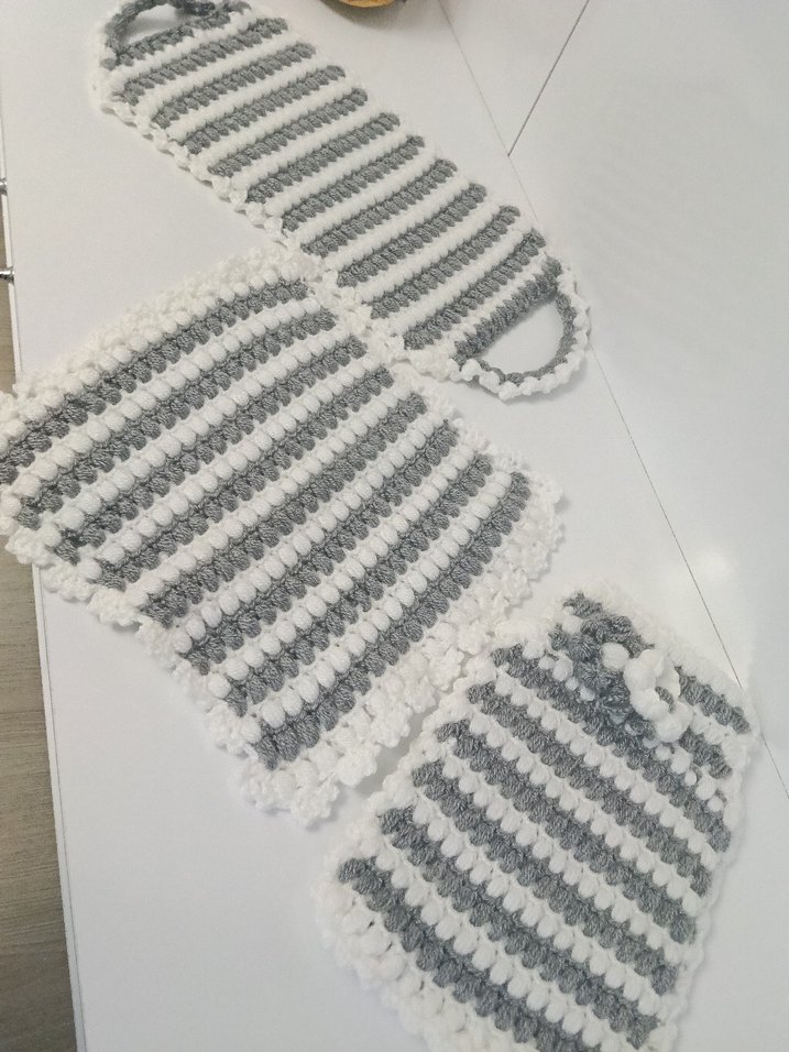 Gri ve beyaz çizgili, yumuşak dokulu bu banyo süngeri seti, nazik eksfoliasyon ve temizlik için uygundur.