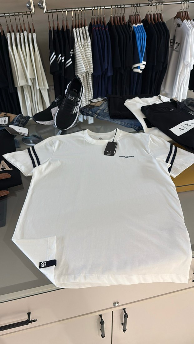 Beyaz, gri çizgili kısa kollu erkek tişörtü. Pamuk kumaştan, rahat kesimli ve baskılı detaylıdır. Günlük kullanım için uygundur.