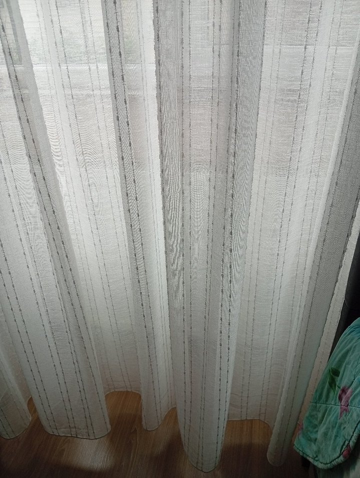 Gri ince dikey çizgilerle beyaz zemin üzerinde klasik tarzda, hafif ve doğal ışık geçiren keten tül perde. iadesi yoktur ona göre alım yapın lütfen