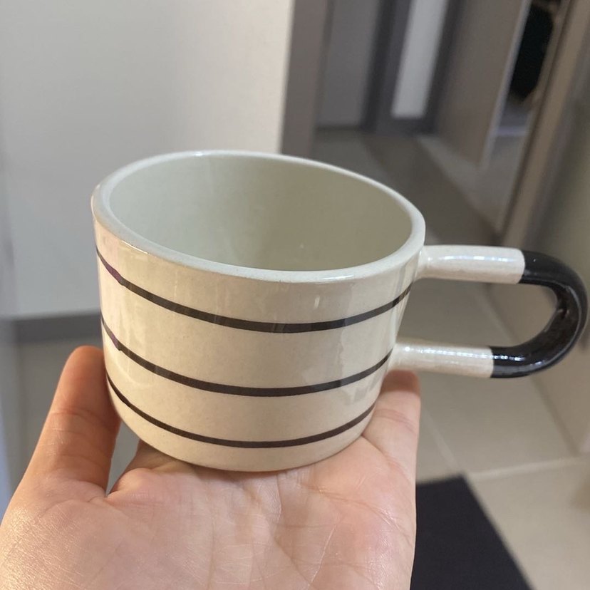 Gri Çizgili Beyaz Seramik Kupa