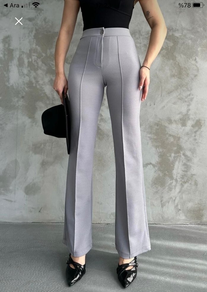 Gri çizgili bol paça Kumaş Kadın Pantolon