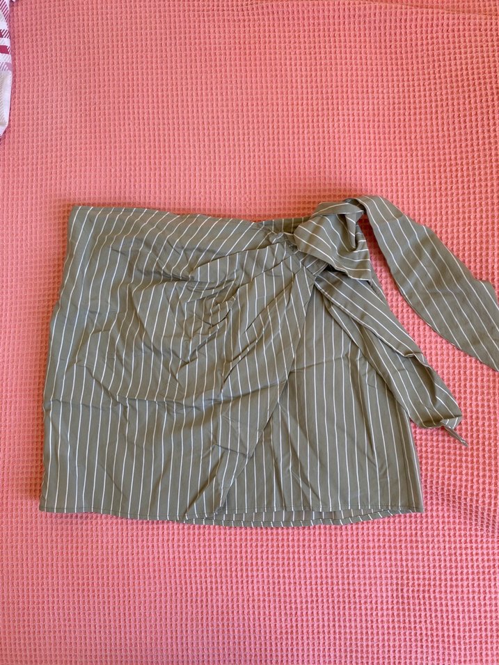 Gri sentetik kumaştan, çizgili ve drapeli tasarıma sahip, kısa ve vücuda oturan mini etek. ✨ sadece bir kere giyildi çok tatlı bir etek