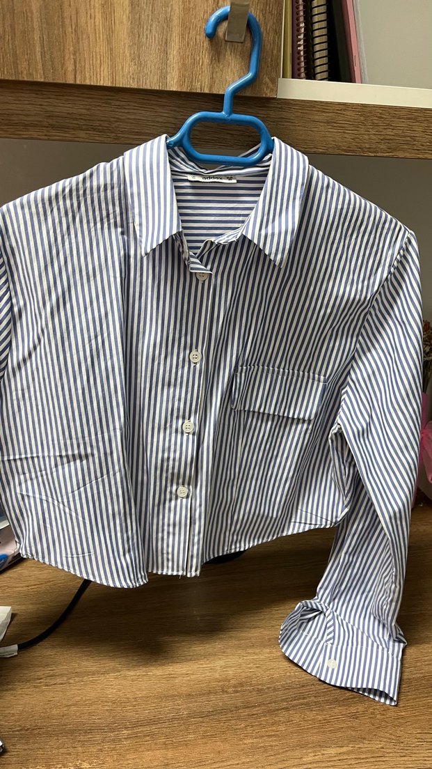 Bu kadın gömleği, uzun kollu ve düğmeli ön kısmıyla yakalıdır. Gri çizgili desene sahip, pamuklu ve günlük kullanıma uygundur.