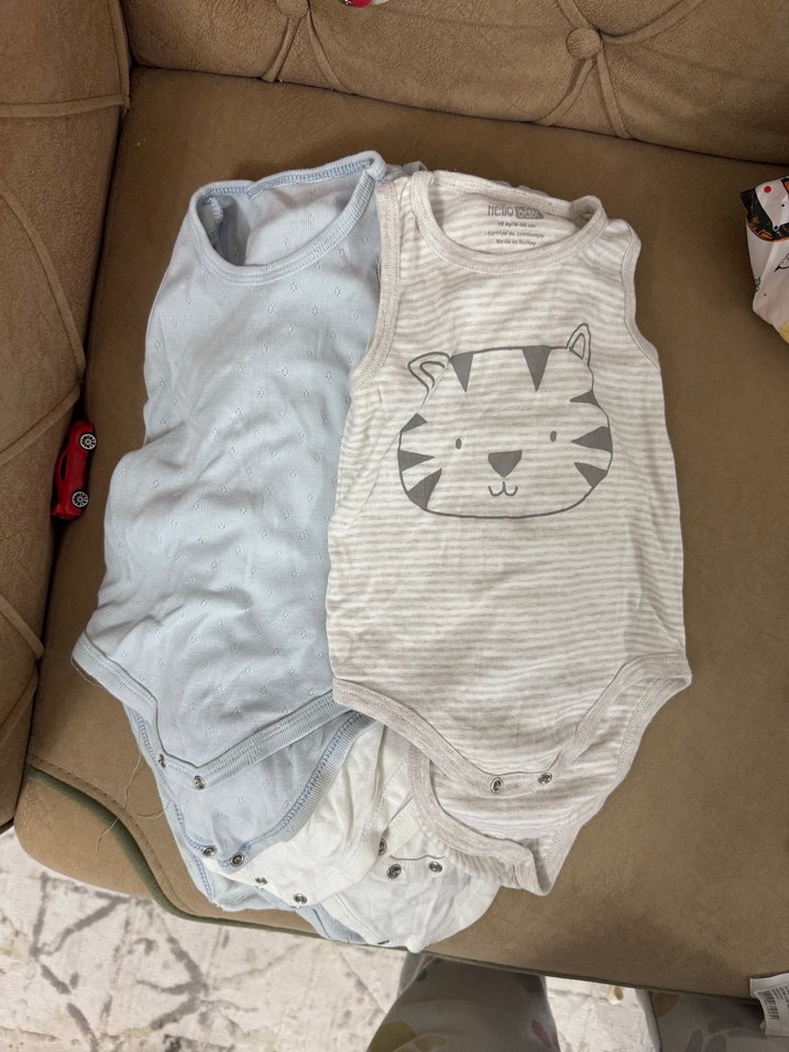 13 tane çıtlı body Pamuklu, kolsuz gri bebek body, örgü dokulu ve sevimli kaplan yüzü baskılı, sokak stili için uygun