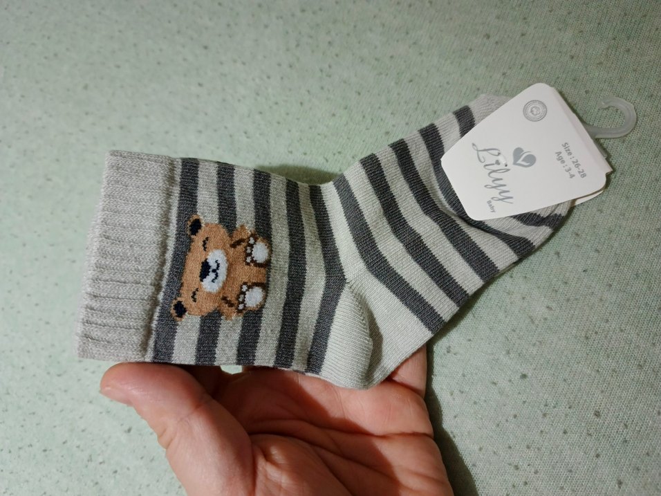 Çizgili desenli ve nakışlı ayıcık figürlü gri erkek çorabı, yumuşak ve rahat bir yapıya sahiptir .