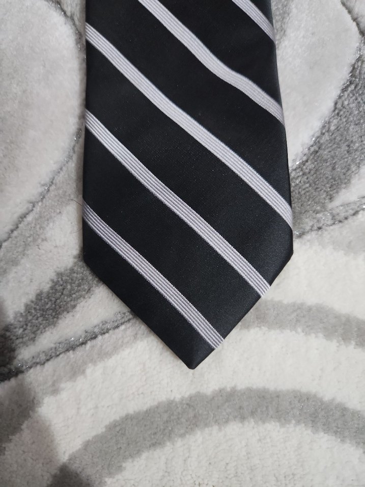 Erkek kravat, gri zemin üzerine çapraz beyaz çizgilerle klasik iş ve sokak stili uyumu sunar.