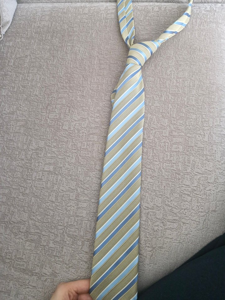 Gri ve bej tonlarında çizgili desenli erkek kravat, şık ve iş ortamına uygun tarz sunar. Sokak modasına uygun, rahat bir seçim.