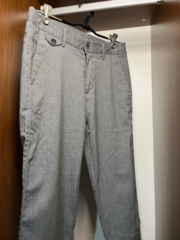 Gri ve çizgi desenli pantolon sıfır gibi hiç giyilmemiş boyum 170 kilom 65 bol gelmiyo paçaları belide bol gelmiyor