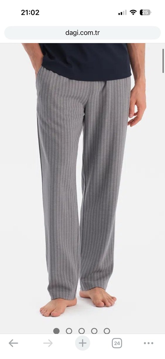 Gri renkli, çizgili ve pileli detaylara sahip erkek pijama altı. Normal boyda, rahat ve minimalist tasarımda, günlük şıklık için uygundur.