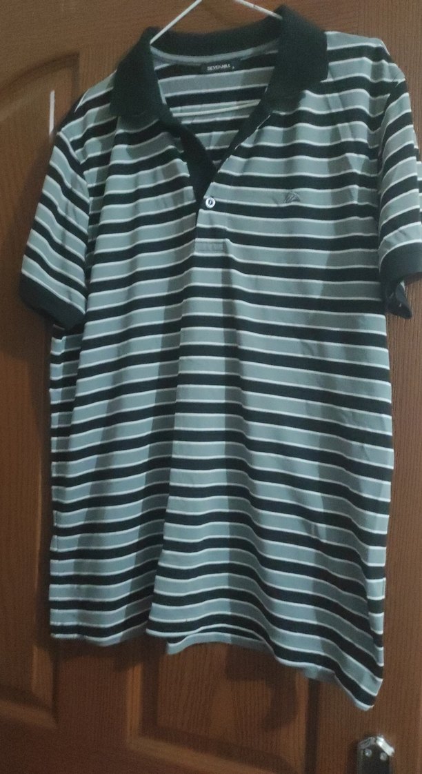 Bu erkek polo tişört, kısa kollu, yakalı ve düğmeli ön yapıya sahiptir. Geniş kesim ve gri çizgili deseniyle rahat bir günlük sokak giyimidir.