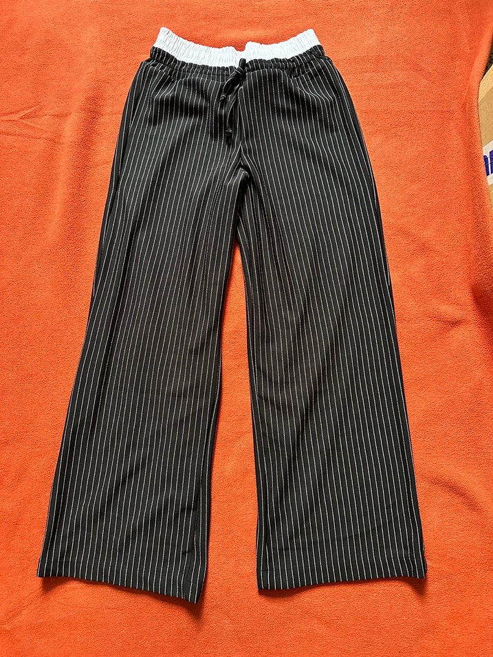 Gri Çizgili Kadın Bol Kesim Pantolon