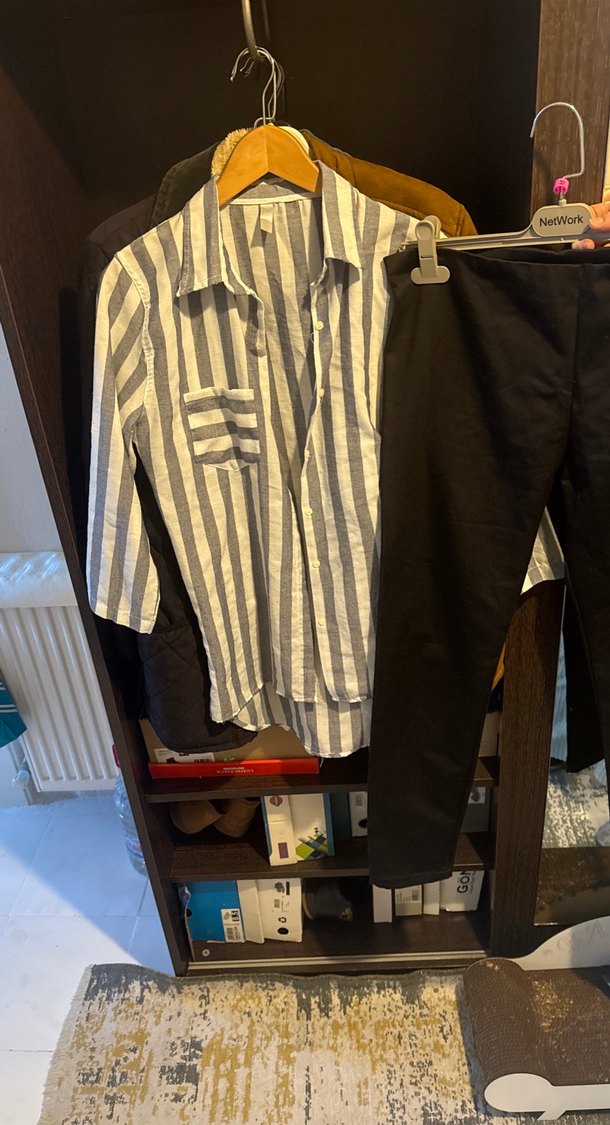 Gri Çizgili Kadın Gömlek