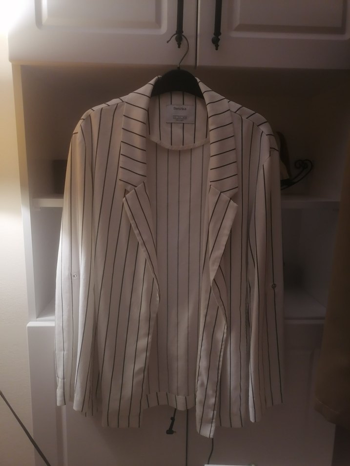 Çizgili gömlek blazer ceket. Normal boy, uzun kollu, regular fit ve ofis ile sokak modasına uygun.