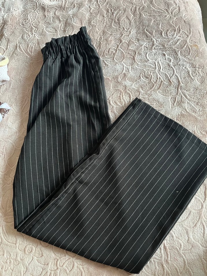 Gri çizgili kumaş pantolon, piliseli ve regular fit kesime sahip. Uzun boy, iş ve sokak stiline uygun, sentetik kumaştan üretilmiştir.