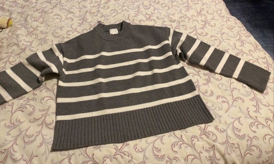 Gri Çizgili Kadın Triko Kazak